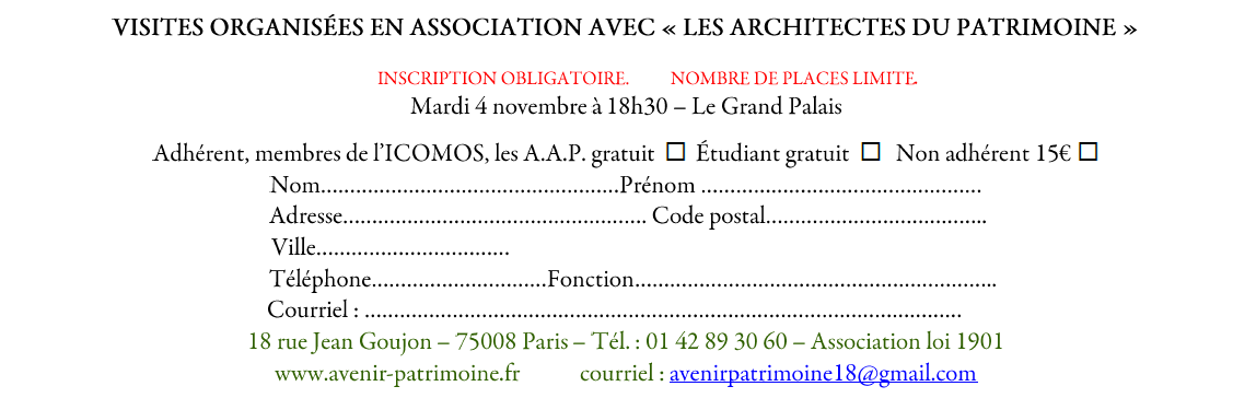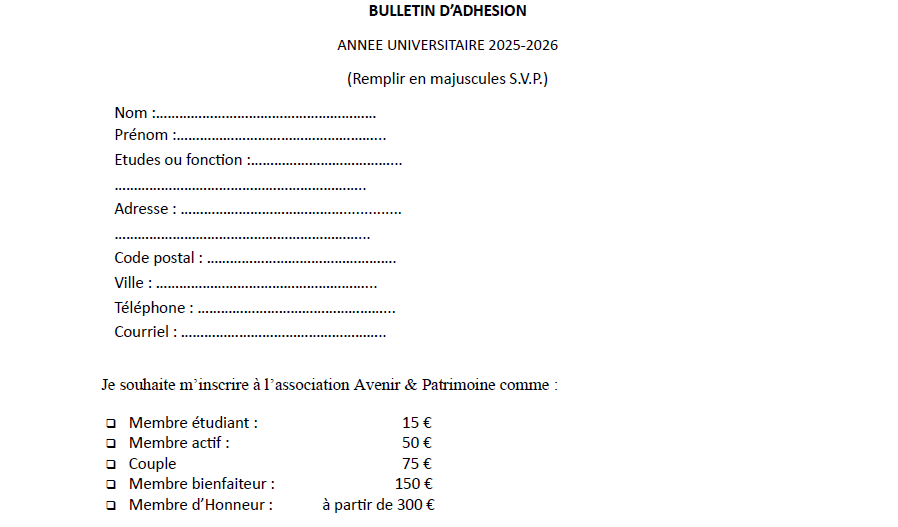 Avenir & Patrimoine regroupe, aussi bien, des acteurs de la vie du patrimoine, dans leurs diverses fonctions, que des amateurs d'architecture et d’art, sous toutes les formes